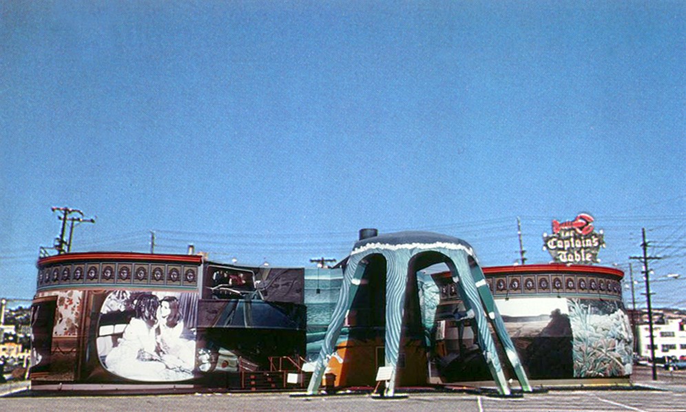 The group never finished this self initiated project because a club owner named Michael Hewitt lured them away with a paid commission to paint the exterior of his Hollywood Club. The Painting, called Beverly Hills Siddartha adapted Hermen Hesse's story of enlightenment. The narrative followed the spiritual journey of young man moving to Los Angeles, a city of natural beauty, artistic opportunity, and vice. Unfortuately, once the Climax Club changed hands, becoming the famous club, Osko's, in 1971, the new owner had a different plan for the googie structure, and the painting was whitewashed out.