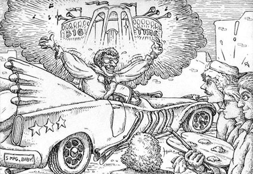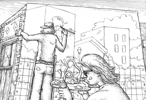 Before long, club owner Michael Hewitt rolls into Squad territory to contract the group for a painting on his massive googie-style building. Leonard has stars in his eyes!