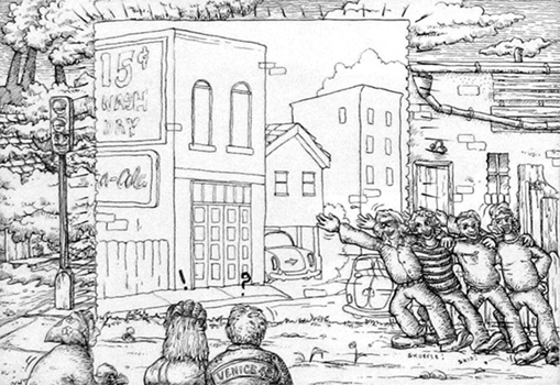 Ecology awareness and spirituality are not accidental themes involved in the message and intent of Terry Shoonhoven [sic], Vic Henderson, Leonard Koren and Jim Frazen [sic], our Venice artists who pooled their talents to create an art of the streets— large, quality paintings out in the open, accessible to anyone passing by.